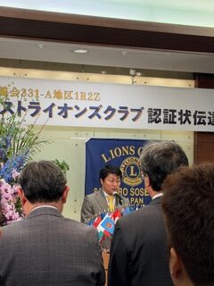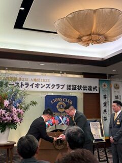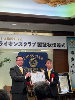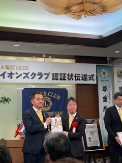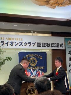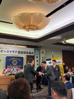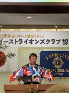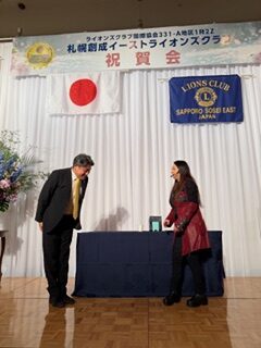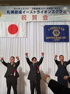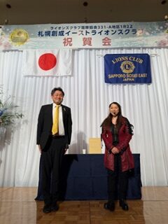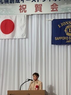 札幌中島ライオンズクラブとして、子クラブの誕生を心よりお祝い申し上げるとともに、札幌創成イーストライオンズクラブの今後の更なる発展とご活躍を祈念いたします。