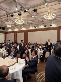 祝賀会では、鏡開きが華やかに執り行われ、会場は一層のお祝いムードに包まれました。その後は各テーブルで交流が深まり、和やかな雰囲気の中で親睦を深める貴重な時間となりました